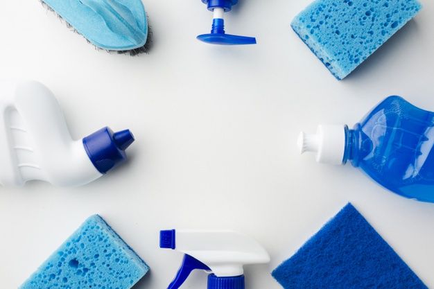 Utilizamos aspiradora industrial, mopa plana de microfibra, mopa de absorción plana, mopa giratoria, limpiavidrios, recipientes, baldes, franelas de microfibra, esponjas, cepillos, trapos de piso, espátulas, distintas herramientas para retirar suciedad, guantes de nitrilo y de látex, tapabocas, y otros.