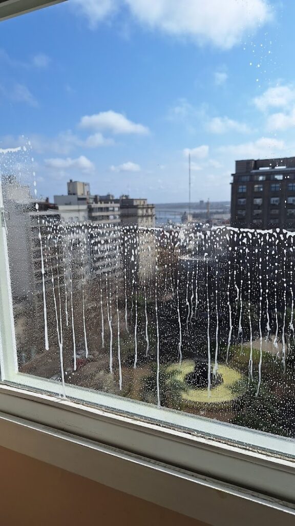 Realizamos limpieza de ventanas, ventanales, vidrios divisorios, mamparas, etc., las piezas completas (marcos, rieles y cristales).